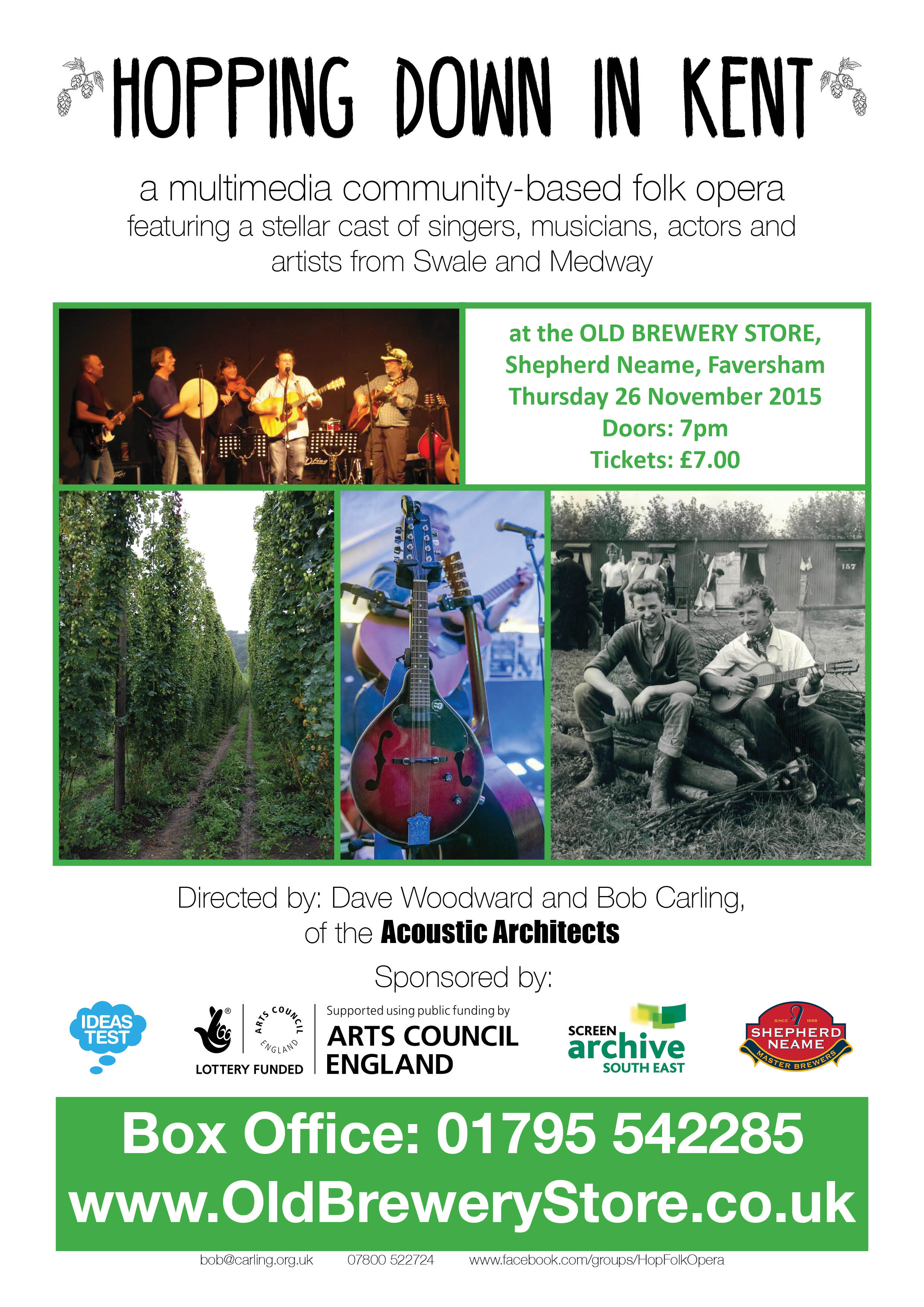 Great news! We have been given permission to use Screen Archive South East footage from the DVD “In the Hop Fields of Kent” (which we have been showing at the various Workshops) at the show on 26 November. That means changing all of the promotional material to add in their logo – but that’s a nice problem to sort out!